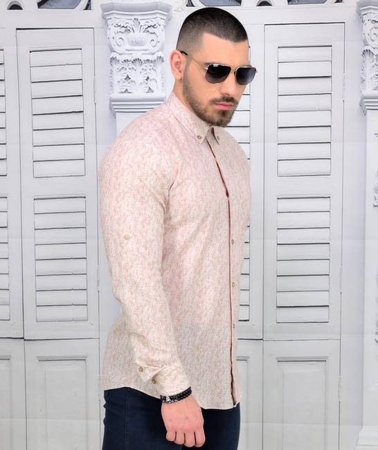 Луксозна мъжка бежова риза на флорални елементи от Aviv мъжки дрехи